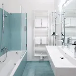 There are 30 rooms comprising a kitchen and a kitchenette. Some of them offer individual climate control, central heating, and ironing facilities along with a minibar fridge, coffee and tea makers. Bathroom essentials include a separate toilet and a shower as well as a hairdryer and bath sheets for guests' extra comfort. Some air-conditioned rooms have views of the pool. Looking onto the garden, the apartment features kitchen with a microwave oven, a refrigerator, and kitchenware.